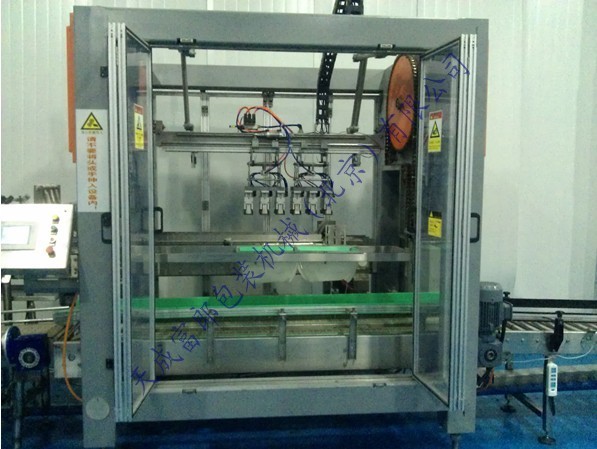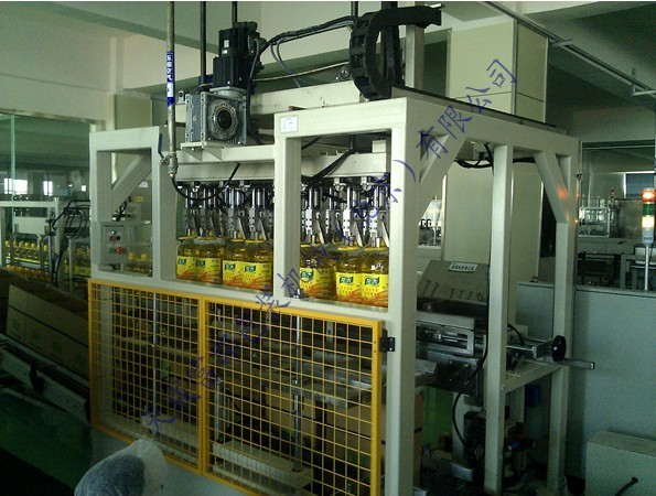 電動裝箱機(jī)是一種智能性全自動裝箱機(jī),采用高速分配裝置包裝各種容器,包裝塑料扁瓶、圓瓶、不規(guī)則形瓶,各種大小玻璃瓶,圓瓶、橢圓形瓶、方形罐及紙罐等,另外也適用于帶隔板的包裝箱。由瓶夾(內(nèi)置橡膠,以防損傷瓶體)夾住瓶體(每次2箱),放入打開的紙箱當(dāng)中,當(dāng)抓頭抬起時,將紙箱排出,送至封箱機(jī),本機(jī)采用P.L.C + 觸摸顯示屏控制。設(shè)有缺瓶報警停機(jī),無瓶不裝箱安全裝置。本流水線大大方便操作、管理、減少生產(chǎn)人員和勞動強度,是自動化規(guī)模生產(chǎn)必不可少的設(shè)備。