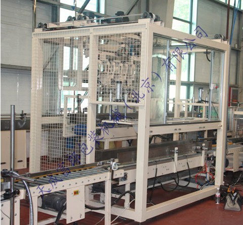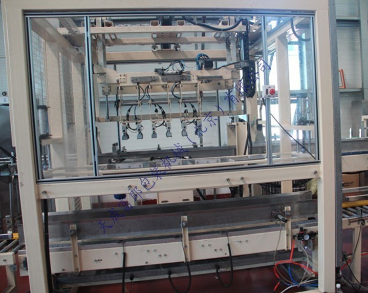 電動裝箱機(jī)是一種智能性全自動裝箱機(jī),采用高速分配裝置包裝各種容器,包裝塑料扁瓶、圓瓶、不規(guī)則形瓶,各種大小玻璃瓶,圓瓶、橢圓形瓶、方形罐及紙罐等,另外也適用于帶隔板的包裝箱。由瓶夾(內(nèi)置橡膠,以防損傷瓶體)夾住瓶體(每次2箱),放入打開的紙箱當(dāng)中,當(dāng)抓頭抬起時,將紙箱排出,送至封箱機(jī),本機(jī)采用P.L.C + 觸摸顯示屏控制。設(shè)有缺瓶報警停機(jī),無瓶不裝箱安全裝置。本流水線大大方便操作、管理、減少生產(chǎn)人員和勞動強度,是自動化規(guī)模生產(chǎn)必不可少的設(shè)備。